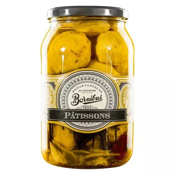 Die kleinen, sternförmigen Patisson-Kürbisse sind eine französische Spezialität – knackig eingelegt in einer fein abgestimmten Essigmarinade. Sie sind ein echter Hingucker auf Antipasti-Platten, Salaten oder als Beilage zu Fleisch und Fisch.